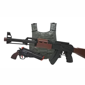 هیجان یک بازی پلیسی بیرون از خانه را با ست اسباب بازی پلیس کلاش جلیقه به کودکان هدیه دهید. این ست جذاب که شامل یک هفت تیر، یک کلاشینکف، گلولههای گرد پلاستیکی و تیرهای چسبونکی، جلیقه، چاقو، نارنجک، بیسیم، نشان پلیس و دستبند میشود، یکی از کاملترین ست های پلیسی برای نقشآفرینی کودکان به عنوان یک افسر پلیس است و جای اعتراضی را برای کودکان باقی نمیگذارد.