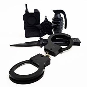 | محتویات کامل بسته | ۱ جلیقه، ۱ هفتتیر، ۱ تپانچه، گلولههای گرد، تیرهای چسبونکی، ۱ چاقو، ۱ نارنجک، ۱ بیسیم، ۱ نشان، ۱ آدمک هدف، ۱ دستبند |